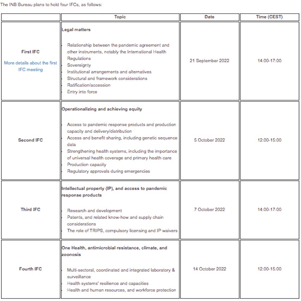 Milliríkjasamningastofnunin (INB) hélt annað af fjórum óformlegum áherslusamráðum (IFCs), sem var opið öllum aðildarríkjum WHO og viðeigandi hagsmunaaðilum.